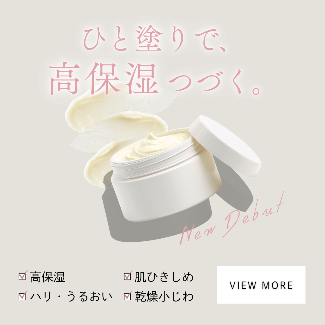 化粧品ブランドの広告バナーを想定して制作しました。 「未来の肌」というコピーから、落ち着きと上質さを感じられるエイジングケアの世界観を表現しています。 余白を活かしたレイアウトと縦書きのコピーを取り入れることで、上品で洗礼された印象になるようデザインしました。